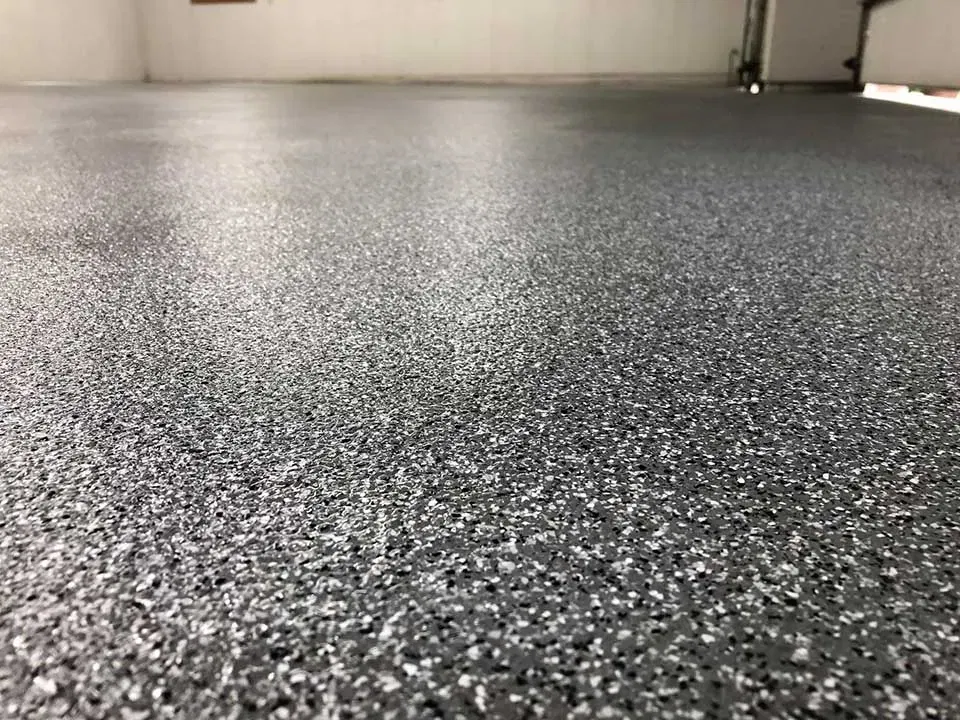 Epoxy is a very durable, synthetic coating that gets put on top of concrete. This adds a layer of protection and gives concrete a great aesthetic.