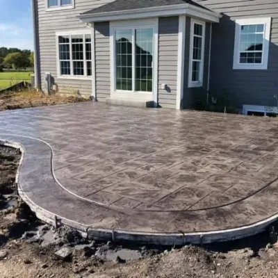 Custom concrete patios change backyards into nice spots to relax. Stamped or stained concrete can look like cobblestone or wood planks. This matches many home styles well.